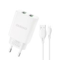 Kraftfuld 22,5 watt hurtigopladende AC-adapter med en standard USB-port (USB-A) og en USB-C-port, som gør det muligt at...