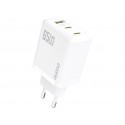 Kraftfuld og kompakt 65 W GaN-oplader med to USB-C-porte og en konventionel USB-port, der giver hurtig og sikker opladning...