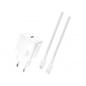 Kompakt og hurtigopladende strømadapter fra Dudao, udstyret med en USB-C-port til praktisk opladning af f.eks....