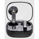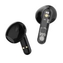 Komfortable, ægte trådløse in-ear-hovedtelefoner/headset til ægte trådløs lyd med Bluetooth 5.2 og op til 4 timers batteritid (10 timer med etui). Med indbygget mikrofon og knapper til besvarelse af opkald. Stilfuldt halvsort halvgennemsigtigt design, så du kan se de indvendige komponenter.
