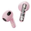 Komfortable, ægte trådløse in-ear-hovedtelefoner/headset til ægte trådløs lyd med Bluetooth 5.2 og op til 4 timers batteritid (10 timer med etui). Med indbygget mikrofon og knapper til besvarelse af opkald. Stilfuldt halvpink halvgennemsigtigt design, så du kan se de indvendige komponenter.