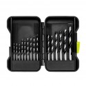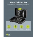 Hver bor har sin egen markerede plads i det robuste opbevaringsetui, så det er nemt at finde den rigtige størrelse. Sættet indeholder 15 skarpe bor til gennemgående og blinde huller i både blødt og hårdt træ, perfekt til skrue- og dyvelhuller ved samling af møbler og andre projekter.
