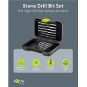 Dette bor-sæt giver præcision og pålidelighed til alle sten- og murværksprojekter. Centreringsspidsen gør det muligt at bore lige og præcise huller uden at boret glider, hvilket gør dit arbejde nemmere og mere professionelt.