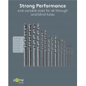 Borehovederne har runde skafter, der passer nemt i en boremaskine eller hammerboremaskine, og fås i flere diametre fra 3 mm til 10 mm. Med dette boresæt har du et alsidigt og pålideligt værktøj, der gør både små og store projekter nemmere.