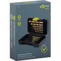 Sættet indeholder 15 HSS-bor af høj kvalitet med titaniumbelægning, der er perfekte til gennemgående og blinde huller i metal. Med diametre fra 1,5 mm til 10 mm har du altid det rigtige bor ved hånden. De individuelt markerede rum i det robuste etui gør det nemt at holde orden og hurtigt finde den rigtige borekrone, hvilket sparer dig tid og frustration.