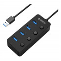 Kraftig 4-port USB-hub med meget hurtig overførsel via USB 3.0. En port har högeffektsladdning for...