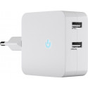 AC-adapter med två USB-kontakter som har stöd för 2x 2.1 A Amperes laddning vilket räcker till för både...