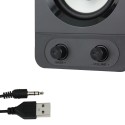 Kompakt højttalersystem til computere med to satellithøjttalere og en subwoofer for ekstra bas. Stilfuldt design med indbygget belysning. Tilsluttes en 3,5 mm lydstik på din computer og en USB-port til strøm, så der er ikke behov for en separat strømadapter. Subwooferen har praktiske volumenkontroller og baskontroller på forsiden.