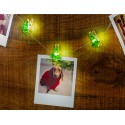 140 centimeter lang lyskæde med 10 varmt hvide LED-lys, der er stemningsfuldt monteret i små juletræer med en clips på bagsiden, så du f.eks. kan fastgøre dem til kabler eller hænge billeder op i dem. Drives af to AA-batterier (medfølger ikke).