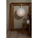 Flerkantet julestjerne i halvgennemsigtigt hvidt papir, 50 centimeter bred og fremstillet af FSC-certificeret papir. Skaber en meget stemningsfuld effekt, når den hænges i vinduet. Bemærk! Kun papirstjernen er inkluderet; lampeholder og lyskilde er ikke inkluderet. Du kan finde lampeholdere under fanen Tilbehør!