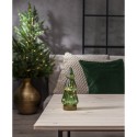 Dette elegante juletræ i mørkegrønt glas spreder en varm, stemningsfuld glød med sine ti LED-lys og gyldne fod. En stilfuld og praktisk indretningsdetalje, der forvandler ethvert rum til en funklende juleidyl.
