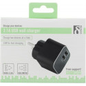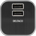 DELTACO Väggladdare 230V till 5V USB, 3,1A, 2xUSB-portar, svart