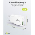 Goobays hurtigopladende strømadapter er den perfekte løsning for dig, der altid er på farten. Med et ultratyndt design, der nemt kan være i enhver lomme, taske eller håndbagage, er den specielt designet til rejsende. På trods af sit kompakte format leverer den op til 20 W og kan nemt oplade smartphones, hovedtelefoner, tablets og powerbanks – hurtigt og effektivt.