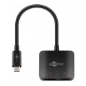 USB-C til HDMI & DisplayPort-adapter med understøttelse af to skærme og samtidig billedoverførsel op til 4K ved 60 Hz (når den bruges med to skærme samtidig i adapteren, spejles billedet af de to tilsluttede skærme). Nem tilslutning med Plug & Play, ingen drivere er nødvendige.