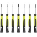 Sæt med 7 præcisionsskruetrækkere, der kombinerer høj kvalitet, ergonomisk design og magnetiske spidser til præcist og behageligt arbejde med elektronik og præcisionsmekanik. Det kompakte, robuste sæt af hærdet krom-vanadiumstål er et uundværligt værktøj for alle, der værdsætter præcision og holdbarhed.