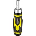 Det korte skruetrækkerhåndtag med gummibelagt greb og praktisk låsefunktion ligger perfekt i hånden og mindsker træthed ved længerevarende arbejde. Sættet indeholder en Y-bit til nem fastspænding af kroge, en adapter til topnøgler, seks CRV-topnøgler fra 5 til 10 mm og 36 slagfaste S2-stålbits i forskellige udførelser – fladskåret, krydsskåret (PH, PZ), sekskantet (H, sekskantet stift) og 6-punkts stjerne (T, TH). Uanset om du samler møbler, reparerer elektronik eller finjusterer detaljer, har du altid det rigtige værktøj lige ved hånden.