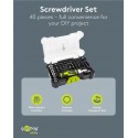 Goobay 43-delt skruetrækker- og bitsæt er den perfekte ledsager til alt fra hverdagens reparationer til avanceret montering. Med en ergonomisk, magnetisk bitholder, gennemtænkt design og en holdbar opbevaringsboks er hver eneste detalje skabt for at give dig en mere smidig og effektiv arbejdsoplevelse. Alle bits er standardiserede og passer også til standard akku-skruetrækkere, hvilket gør sættet ekstra alsidigt.