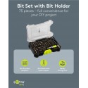 Omfattende bitsæt fra Goobay med 72 magnetiske bits og en hurtigudløser-bitholder, der gør arbejdet smidigt og effektivt. Den smarte, stabelbare opbevaringsboks gør det nemt at holde orden og gør sættet perfekt til både mobil brug og værktøjskassen derhjemme.
