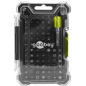 Kassens design gør det muligt at stable den sammen med andre kasser fra samme serie, så du kan skabe perfekt orden i din værktøjskasse eller på din hylde. Takket være sin kompakte størrelse og lave vægt er den nem at tage med på arbejde, i garagen eller i sommerhuset. Goobay Bit Set er et veldesignet, pålideligt og alsidigt værktøjssæt, der hurtigt vil blive en uundværlig del af dit udstyr.