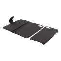 Konstläderfodral med tillhörande magnetskal. Fodralet har tre stycken kreditkortsfack samt en ficka för sedlar, låsfliken på fodralet är även den magnetisk. I fodralet finner du ett skal för din telefon, detta skal kan du ta loss från fodralet och fästa på andra magnetiska ytor. Baksidan av skalet har en gummerad yta.