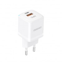 Dobbelt trådløs oplader, der trådløst (med Qi) kan oplade to enheder samtidigt. Hver enhed kan oplades med en maksimal effekt på 10 watt. USB-C til USB-C-kabel medfølger, men AC-adapter skal købes, hvis du ikke allerede har en, der er kraftig nok.