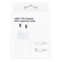 Kompakt 20-watt USB-C-strømadapter til hurtig opladning af f.eks. mobiltelefoner eller tablets. Et 1 meter langt USB-C til Lightning-kabel medfølger også!