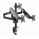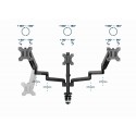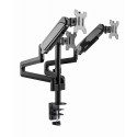 De to ydre arme kan drejes, vippes, forlænges og trækkes tilbage efter behov, så det er nemt at finde den perfekte betragtningsvinkel. Den midterste arm kan justeres i højden, vippes, drejes og svinges jævnt, så du kan indstille hver skærm præcist efter dine arbejdsvaner. Takket være de holdbare gasfjedre, der er designet til skærme, der vejer mellem 1 og 7 kg, får du en stabil og responsiv bevægelse, der reducerer belastningen af både din nakke og dine øjne.